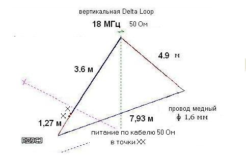 часов за трансивером - это вертикальная Дельта с вертикальной поляризацией .