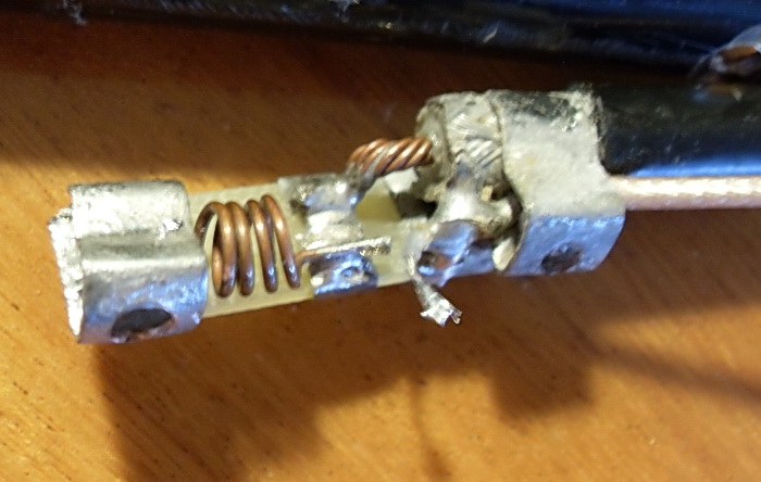 Вид поближе на место пайки. Отрезок кабеля отпаян.